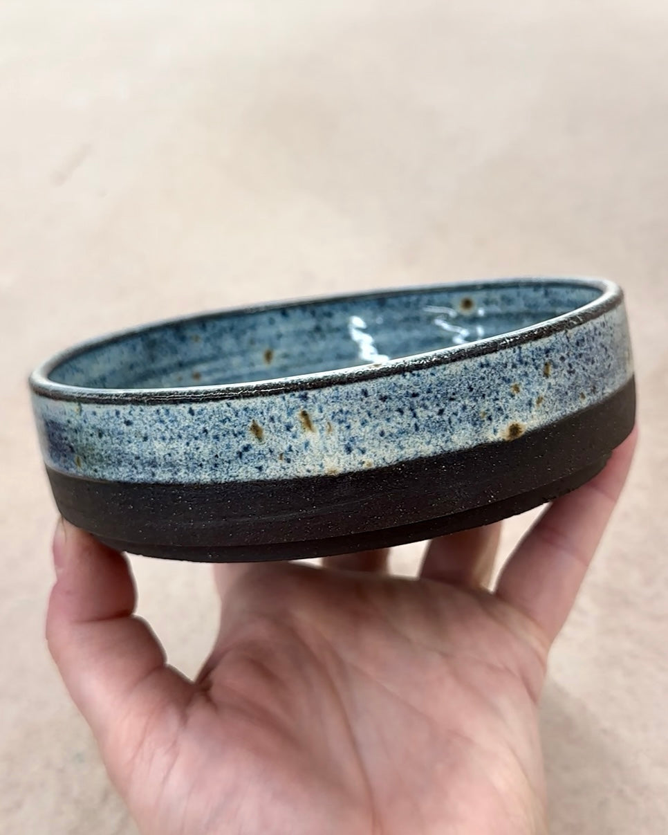 Handmade ceramic dish with a textured center for grating garlic, ginger or spices.